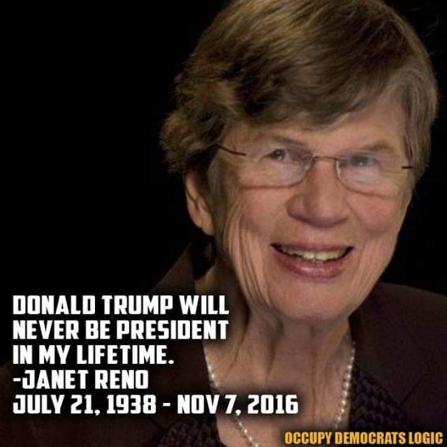 Dat democrate Janet “Donald Trump will never be president in my lifetime” Reno het voorspelde! Een dag eerder stierf ze.